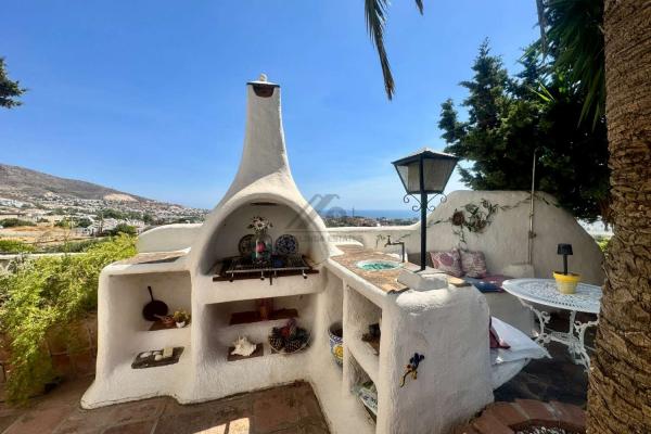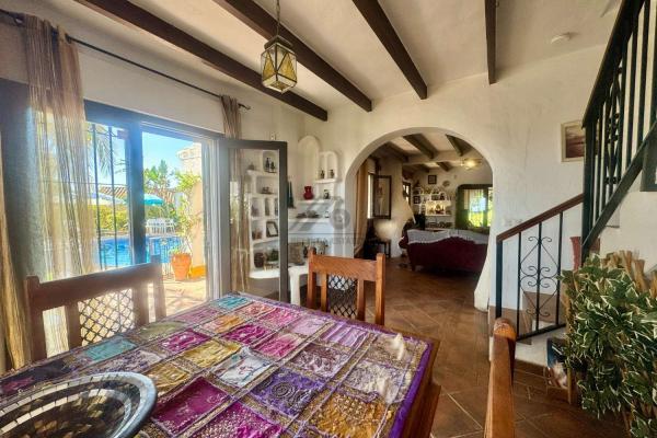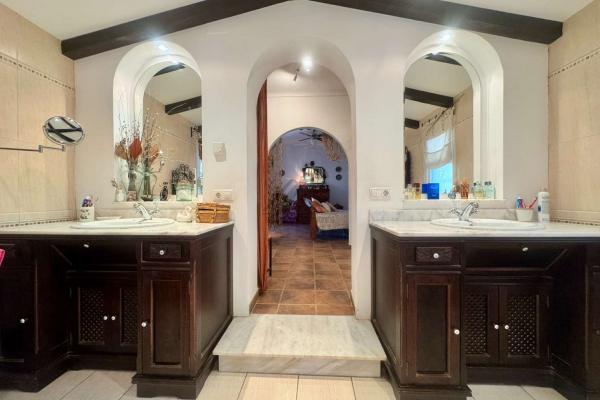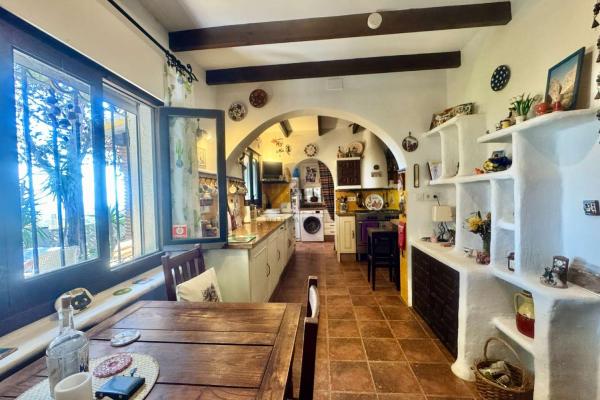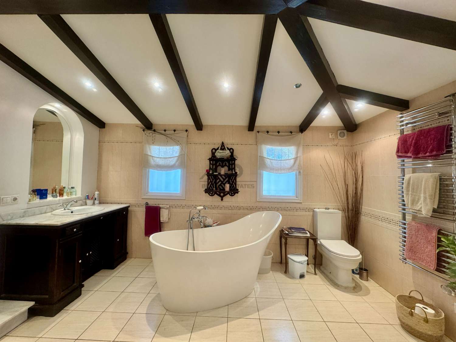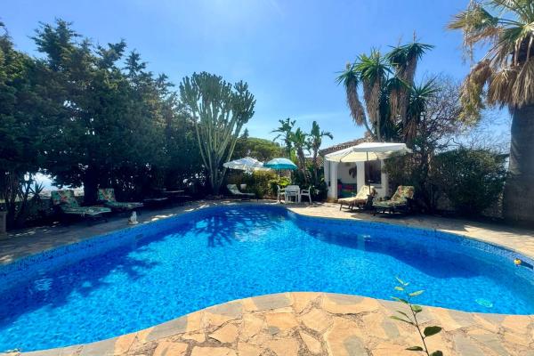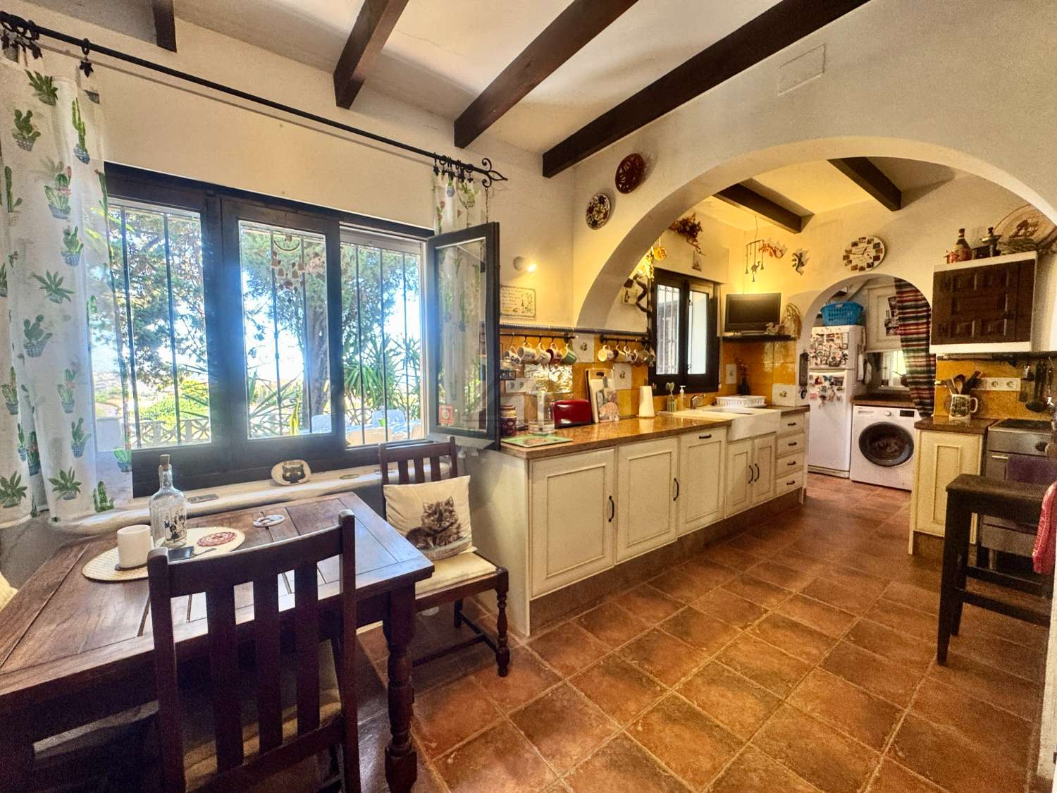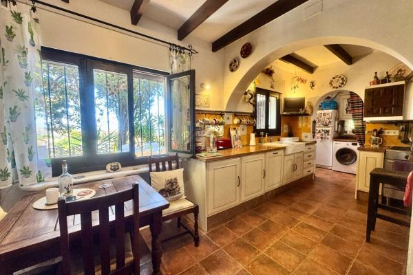 La villa principal se compone de 4 habitaciones, 2 baños y un aseo. Dispone de un gran salón con chimenea, con dos salidas al jardín y dos ambientes diferentes, piscina privada, zona de barbacoa, zona chill y vistas espectaculares. La cocina amplia y luminosa, está totalmente equipada y tiene salida independiente y también disfruta de vistas al mar.