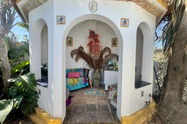 Separado de la casa principal se encuentra un apartamento de un dormitorio, ideal para familiares o invitados, dispone de un salón, cocina, dormitorio y baño, con un pequeño porche con vistas al mar.